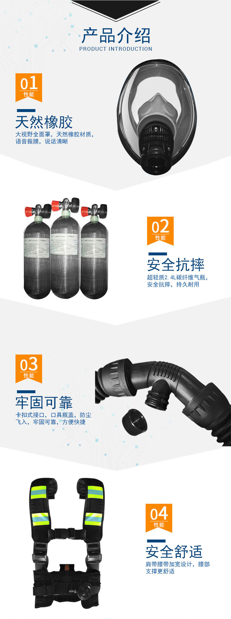 本產品以內循環(huán)供氧方式保證進入有害環(huán)境區(qū)域的作業(yè)人員提供清潔的氣體及臉部防護。