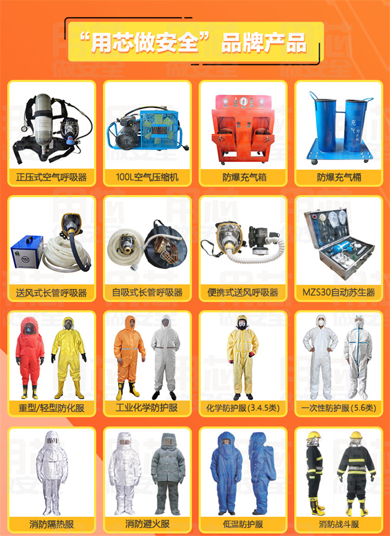 消防員化學防護服裝(一級重型)是由防霧視窗及頭罩、連體衣褲、防砸防刺穿防化膠靴、雙防護腕、防化手套、氣密性拉鏈組成的連體式服裝,使用時與正壓式消防空氣呼吸器配合使用。